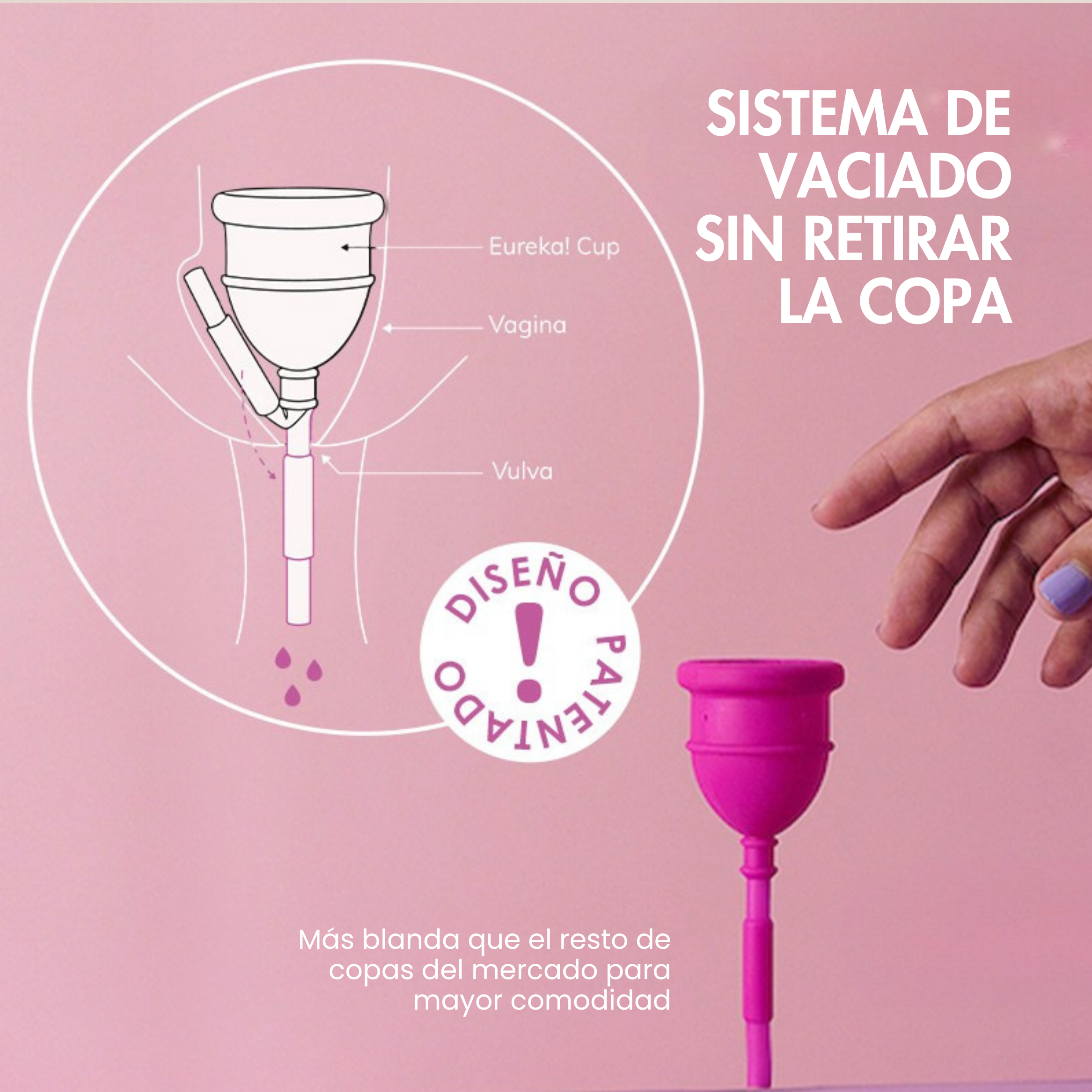 - Eureka!Cup, la copa menstrual que puedes vaciar sin sacarla. Fabricada con silicona médica y pensada para acompañarte todo el día, incluso fuera de casa.